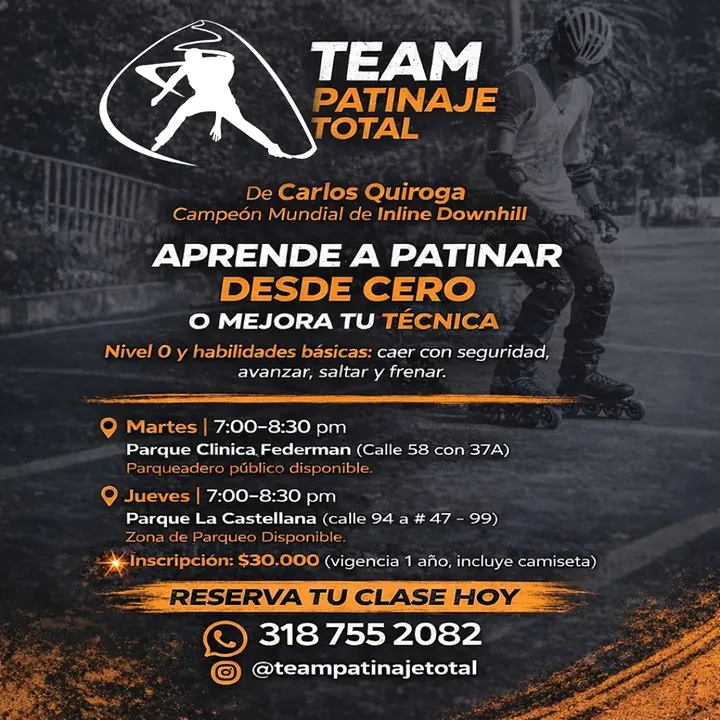 Espacio creado para mejorar tu técnica y habilidades en el patinaje. Todos los niveles son bienvenidos. Se trabaja la parte física (cardio, abdominales,posición,pierna) por lo que recomendamos asistir con ropa cómoda y llevar hidratación.