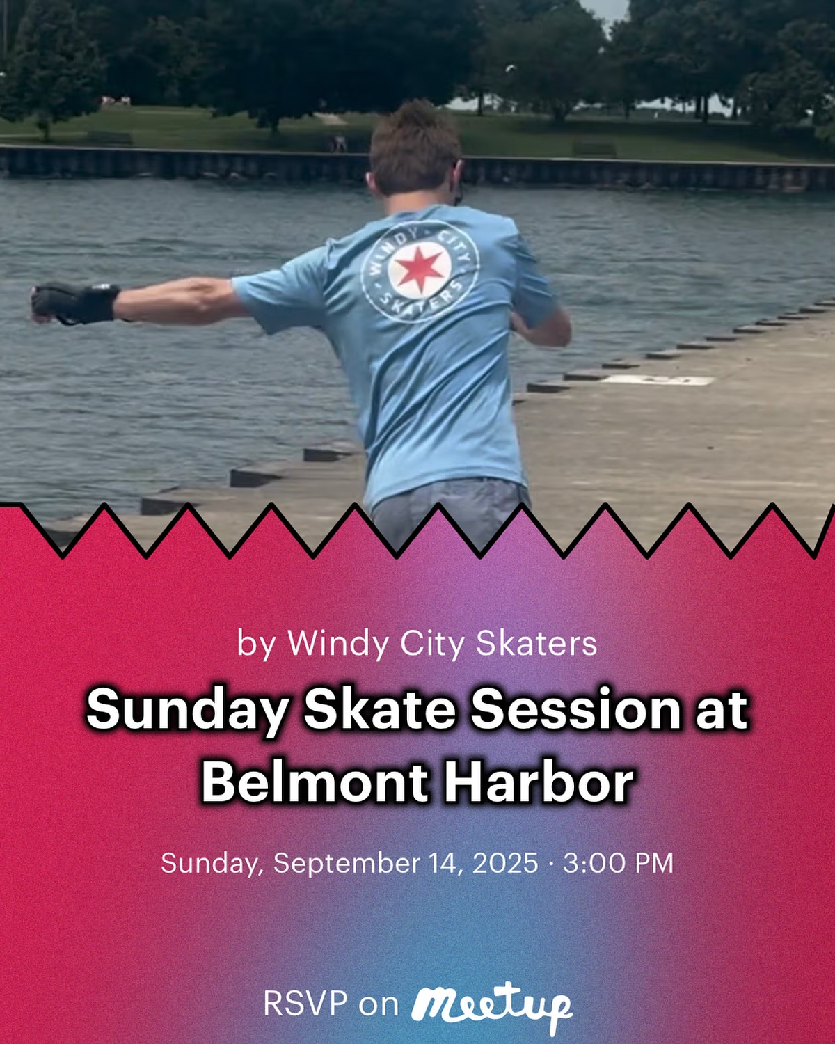 Freestyle Slalom, skill practice, and meeting new people! Beginners are welcome. There will always be someone to help and give pointers. The spot at Belmont Harbor is nice because it is away from the crowds with smooth pavement to put up cones and practice skating. If there is interest, we will end the session with an easy skate along the lakefront path.