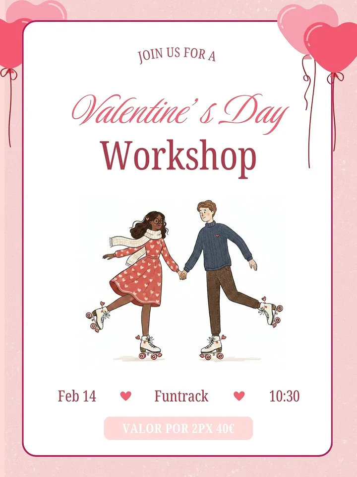 A skater Luísa Guerreiro, dedicated and experiente, vai orientar-vos, inspirar-vos e desafiar-vos a patinar juntos, fortalecendo a vossa conexão. Investe tempo e no bem-estar, enquanto se divertem e descobrem o prazer de patinar lado a lado. Uma experiência inesquecível para celebrar o amor!