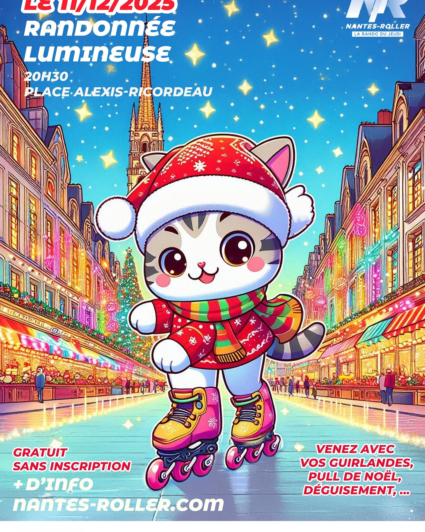 C'est l'heure de sortir son meilleur déguisement afin d’illuminer la ville de Nantes . Comme chaque année, venez participer à la mythique randonnée roller spéciale Lumineuse. La randonnée empruntera le parcours événementiel B qui est accessible au plus grand nombre ! Une bonne occasion de sortir entre amis, en famille, avec les enfants… Une distribution de bonbons sera également de la partie!