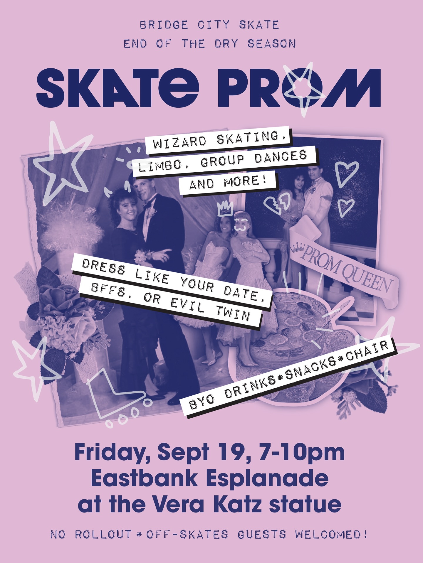 Dress like your date(s), your BFFs, or your evil twin! Best matching outfits have a chance to win being prom royalty, chosen by applause votes! BYO drinks, snacks, chair, etc. (sharing = extra credit) Wizard skating, limbo, group dances, and more! Got party lights or decorations? Bring them! Friends & family welcome. Skates encouraged, but no skates? No problem! Close out the season in questionable formalwear!