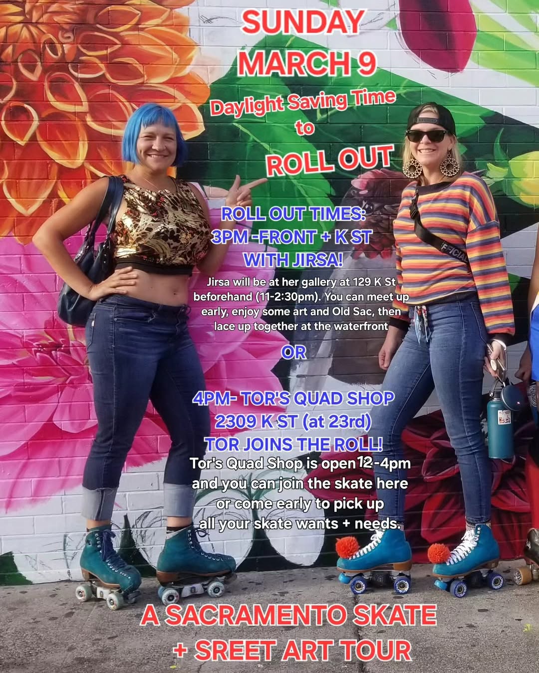 Meet up to roll around, explore downtown and old Sacramento. Latest time to meet and get checked in with @sacquadsquad group to get bracelet. Parade at 5pm. Dance Party amongst floats at 7pm. Must sign waiver to skate and for entry ticket. Easy Skate, but need to be able to skate on street surfaces and have controlled stops. Wear all your Mardi Gras flare.