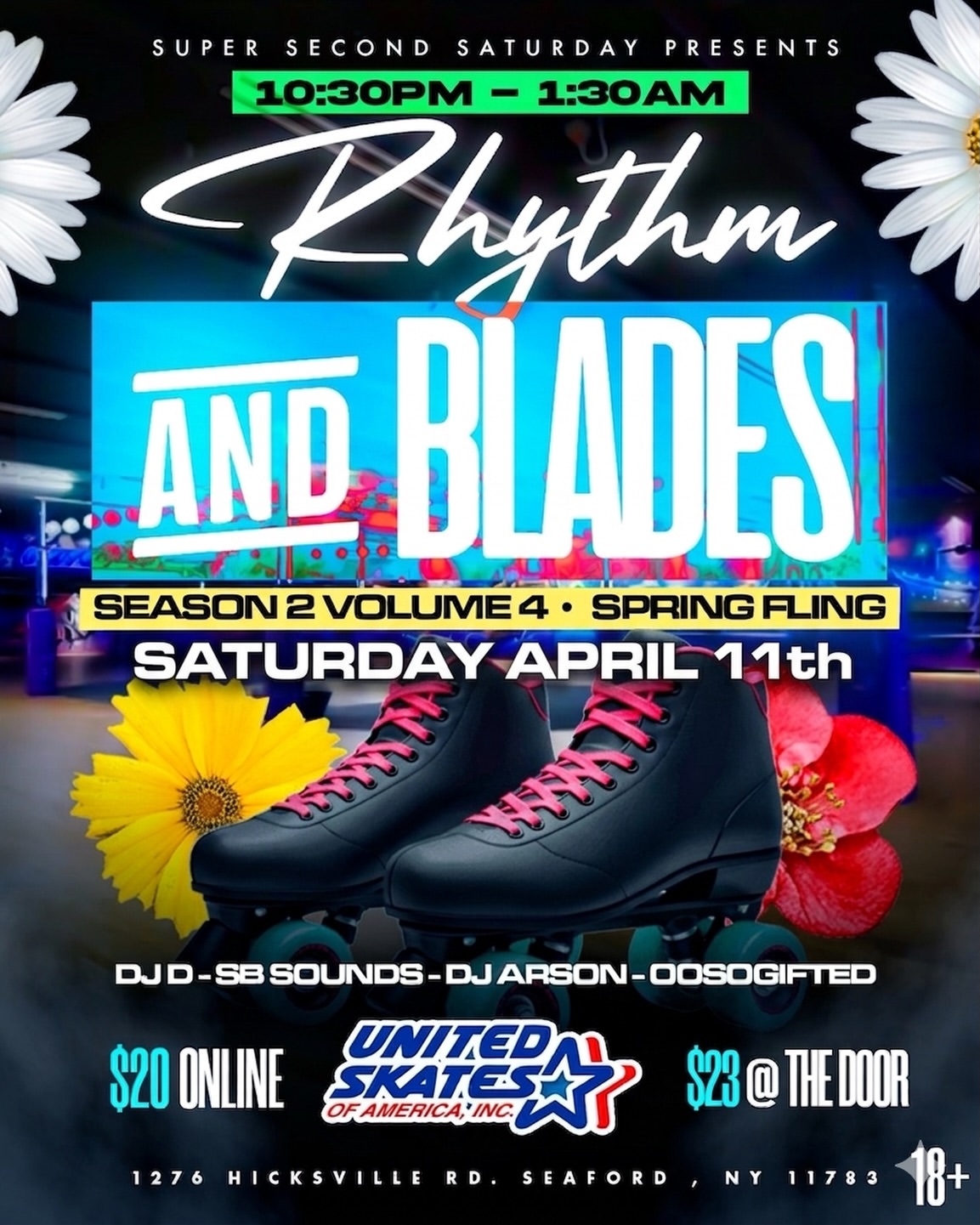 Super Second Saturdays presents Rhythm & Blades: Season 2 Volume 4 “Spring Fling Edition“. Get ready to glide, groove, dance and roll at Rhythm & Blades – the ultimate roller skating party! Set to the best beats, this event is where music skating and dancing collide for a night of pure fun. Whether you’re a pro on wheels or just lacing up, join us on the rink to dance, skate, and vibe under the lights.
