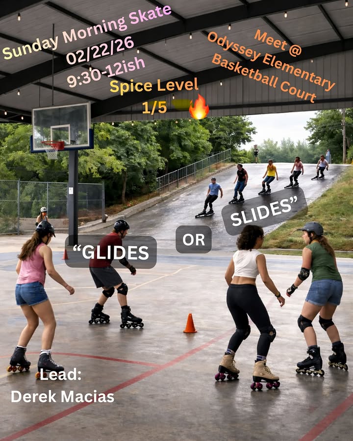 Rain or Shine \ Glides or Slides. Meet Spot: Back of Odyssey Elementary @ Roof Covered Basketball Court Stop 1: Undercover Basketball Court Spot 2: On Campus hill ( 50’ away)"