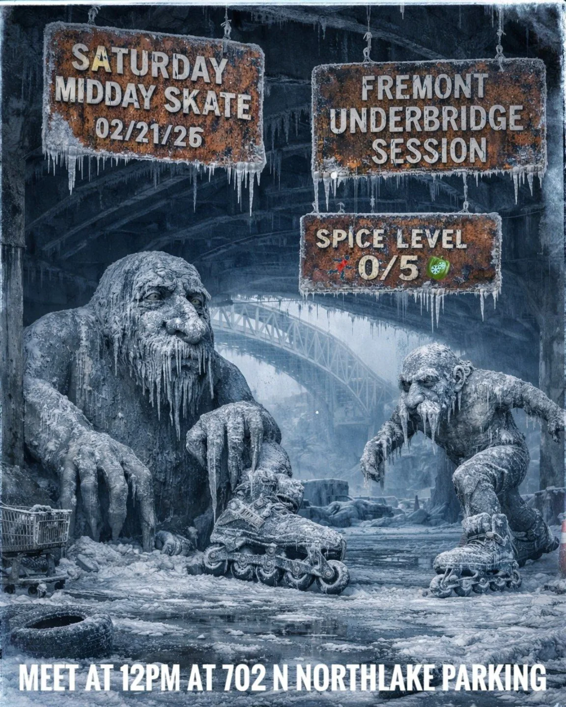 Chill loops in the morning. Skate inner and outer loops, with a slide practice break at the boat ramp, and a resting stop at the Arch. All skill levels welcome!