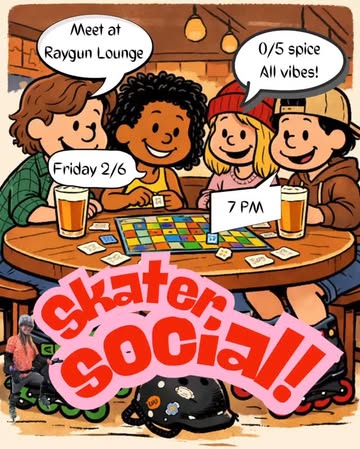 Seattle Distance Skating Club Low-pressure social meetup for skaters who want to reconnect with the community. Come hang out, meet new friends, catch up with old ones, grab a snack, and play some board games. No skating required — just show up and vibe.