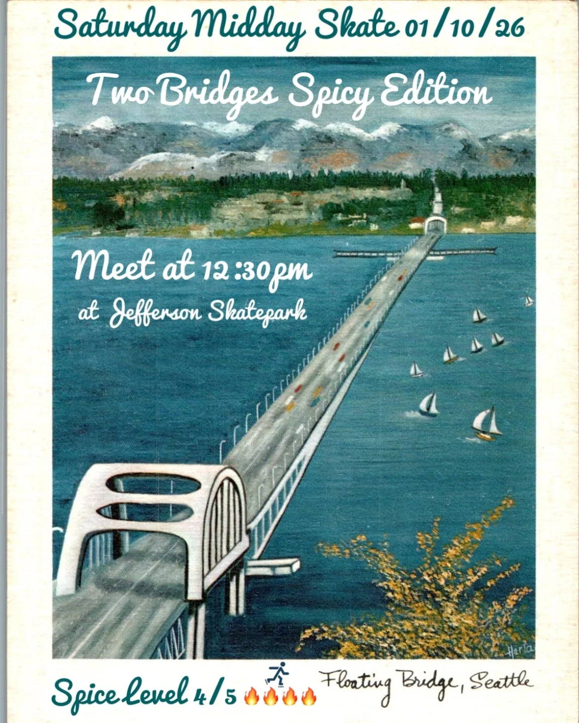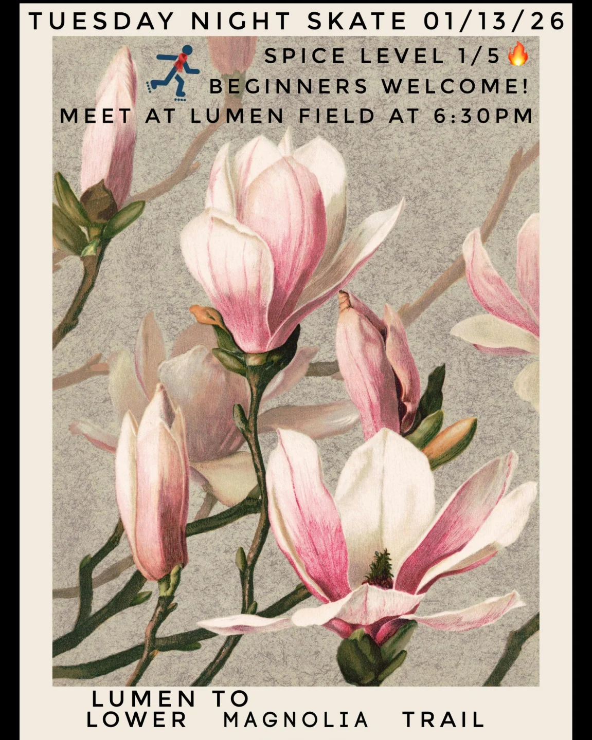 Regroup by the Greenlake Park Arch, where everyone who craves hills and distance will be invited on a spicy adventure to Richmond Saltwater Park and some other places with stunning views and steep hills. This is an advanced friendly part of the skate!