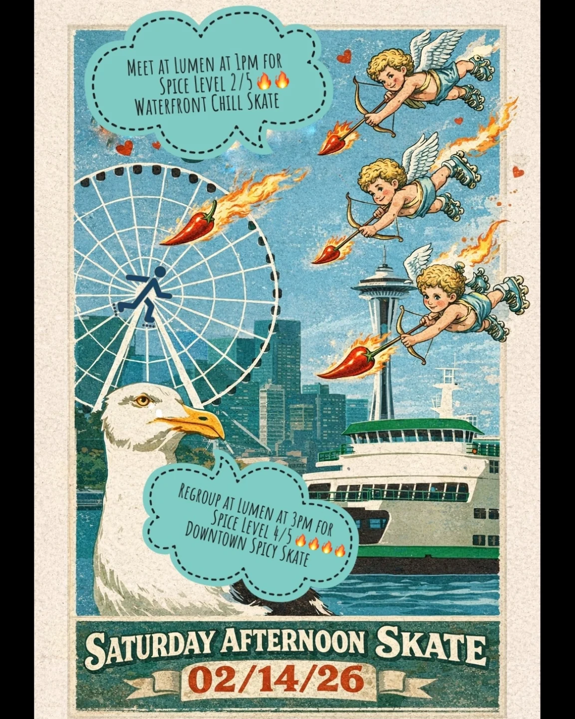 Chill loops in the morning. Skate inner and outer loops, with a slide practice break at the boat ramp, and a resting stop at the Arch. All skill levels welcome!