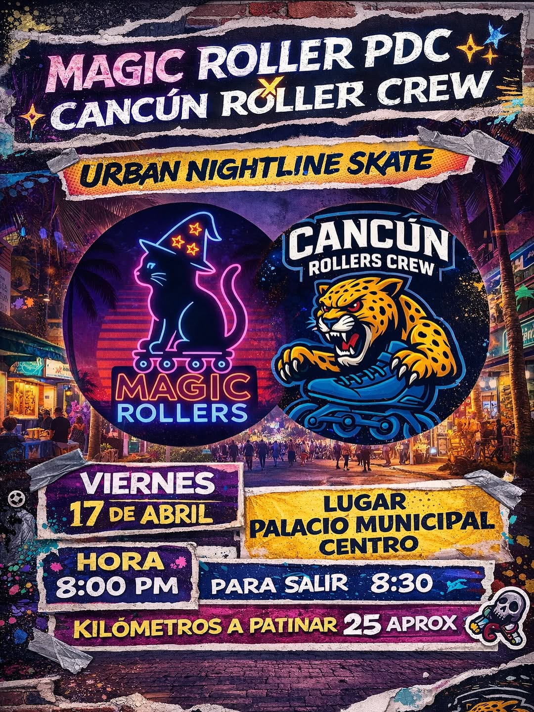 This event brings together skaters from around the world for multiple routes through Cancún's Zona Hotelera and Isla Mujeres, with additional routes to be announced. Participants can expect a series of meetups designed for skating, connecting with other clubs, and enjoying diverse skating experiences over several days. All skating clubs are invited to join and confirm their attendance.