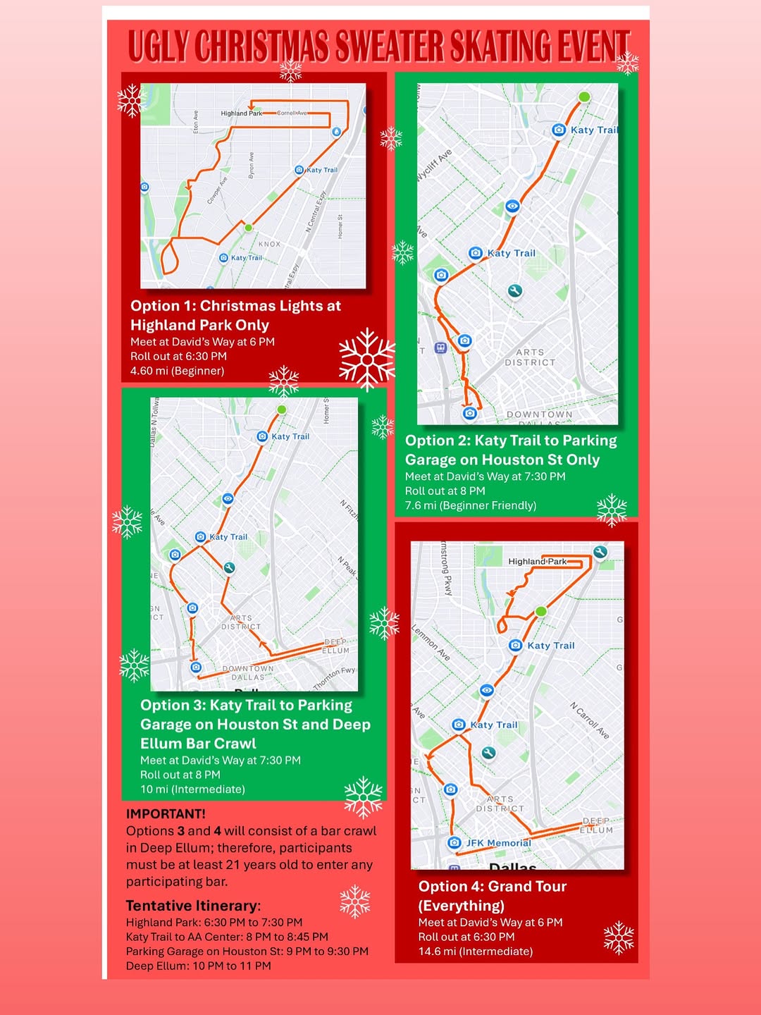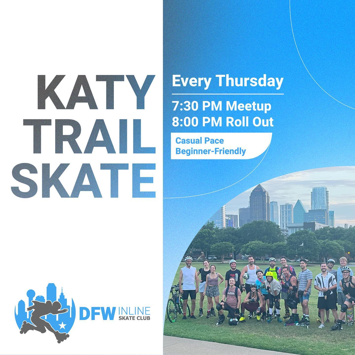 Skate to American Airlines center and back. Social and casual pace. The skate is all on the trail but sometimes you will need to be able to yield to pedestrians on the trail.
