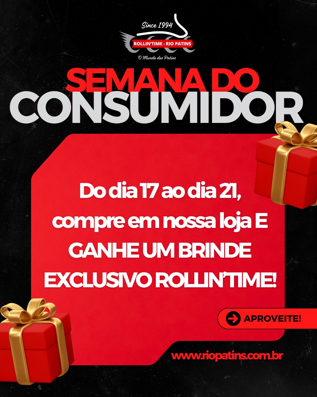 Exclusive Rollin'Time gift with every purchase at Rio Patins during Semana do Consumidor.