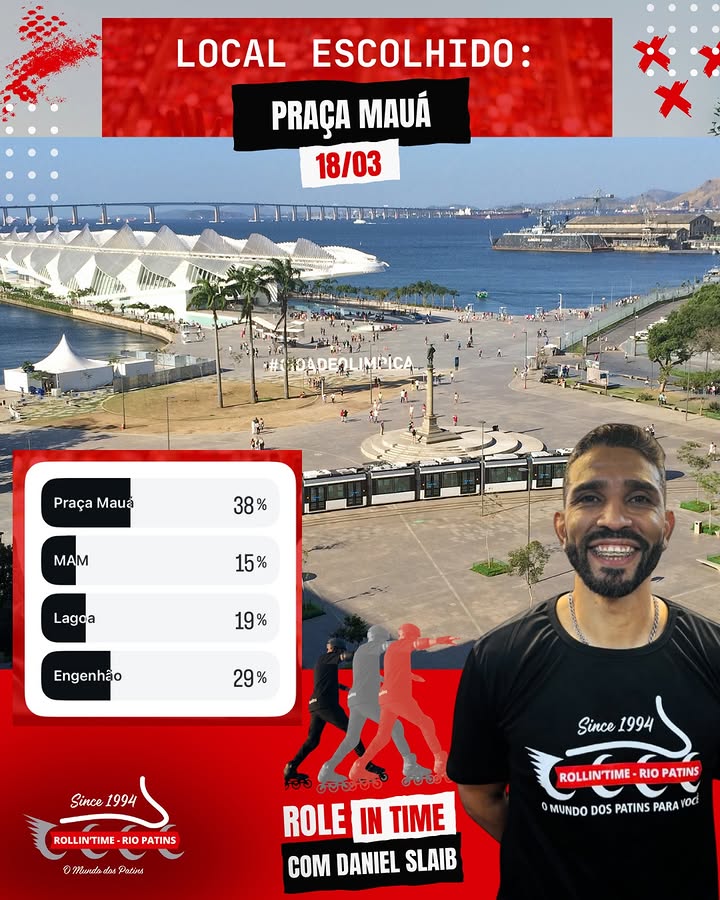 Role in Time at Praça Mauá for enthusiasts, beginners, intermediate, and advanced skaters.