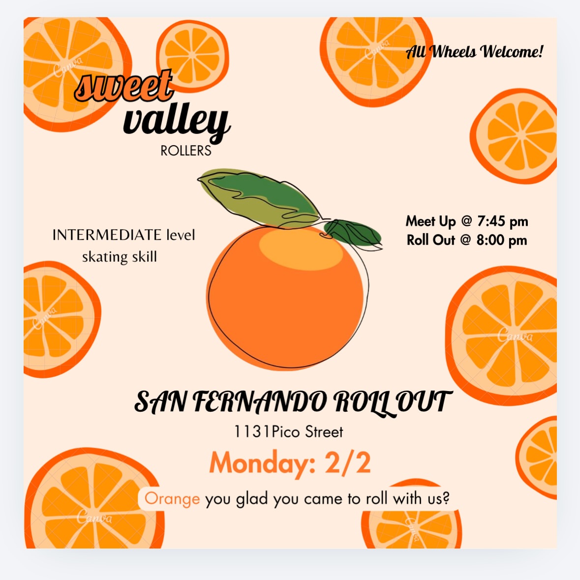 Inclusive skate group in the San Fernando Valley, Los Angeles. All wheel types welcome.