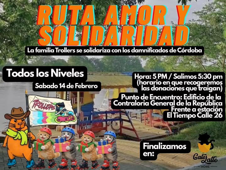 San Valentín skate to GatoLatte to support Cordobeses. Bring non-perishable food, water, clothes in good condition, blankets.