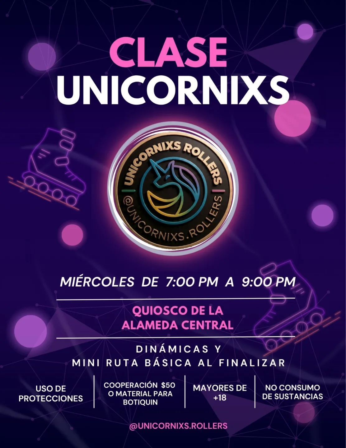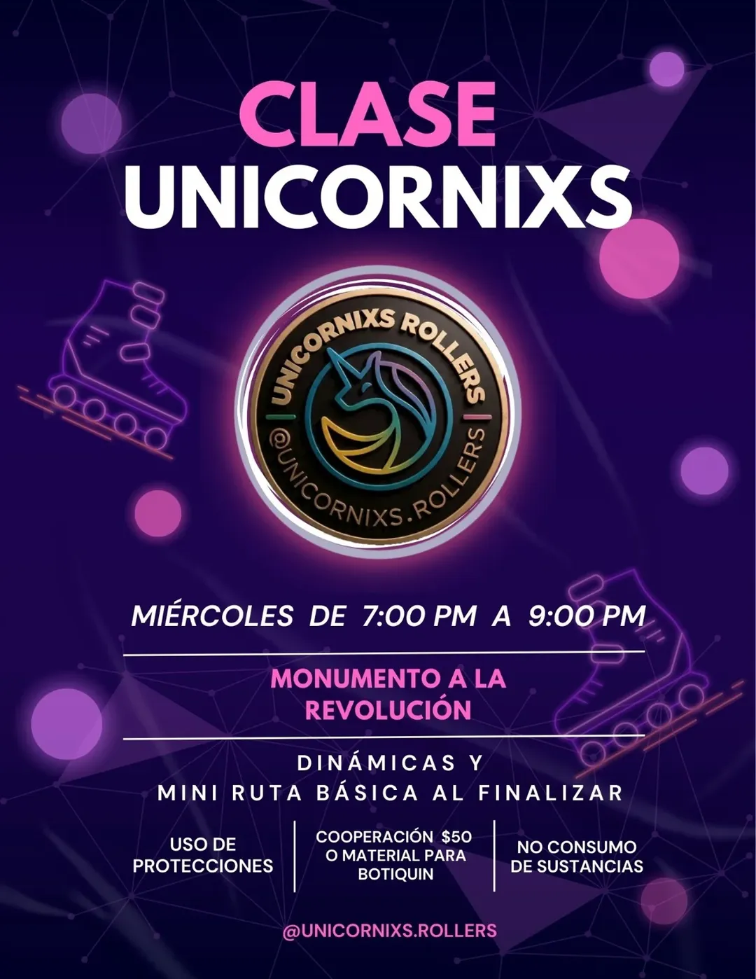 LGBTQ+ inclusive roller crew in Mexico City. Organizes Pride Roller Day CDMX + weekly Wednesday classes + Friday rides.